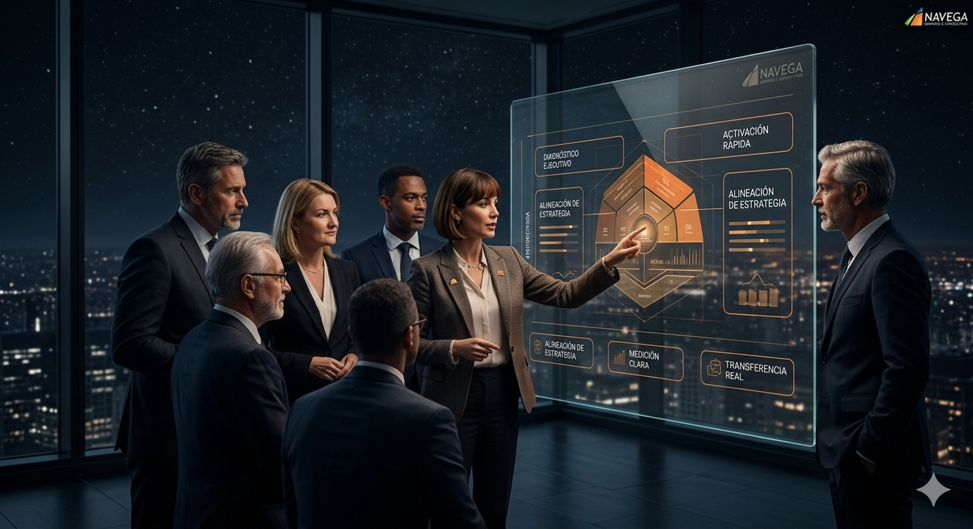 Precisamente para eso es la intervención. El síntoma más claro de que necesitas este modelo es la fricción interna causada por la falta de un lenguaje común. En Navega hablamos tres idiomas: el del CEO (estrategia y ROI), el del PMO (ejecución y entregables) y el de HR (cultura y talento). Alineamos esas tres visiones en una sola arquitectura estructurada para estandarizar el liderazgo sin perder la agilidad del negocio.